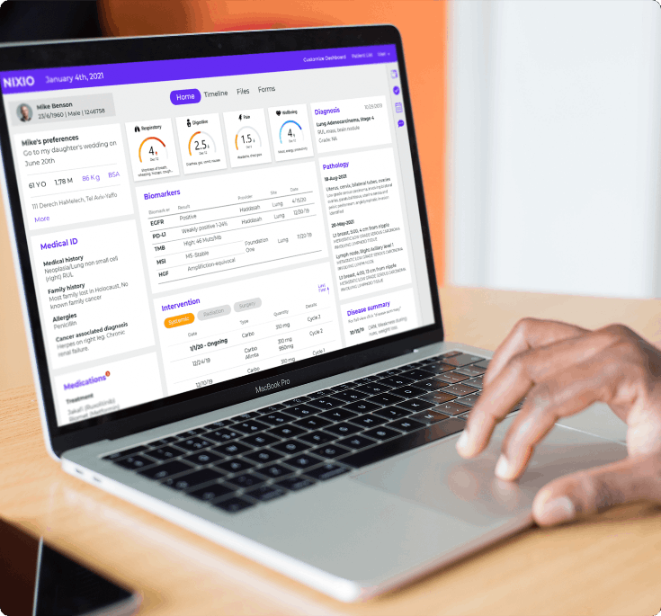 The N1X10 Advocacy Team uses a proprietary and innovative dashboard complemented with a smartphone patient app, both designed to deliver personalized oncology advocacy and tailored patient education. The smartphone patient app allows you to track your symptoms, update preferences, upload data, and stay informed about your treatment journey. New information is continuously integrated into the dashboard to assist your understanding of how to oversee and monitor your personal data.